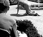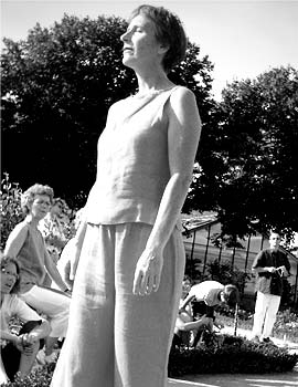 "Die strenge Anlage des barocken Gartens fasziniert die Darmstädter Künstlerin: In diesem fein konstruierten Garten, in dem bunte Blumenbeete schnurgeraden Obstbaumreihen und Tausenden von Gemüsepflanzen gegenüber stehen, spiegele sich die Beziehung verschiedener Formen in den Prosagedichten Gertrude Steins. So vielfältig die Metaphorik in den beschreibenden Gedichten der "Tender Bottoms"ist, so fernab der klassischen Bühne war die Inszenierung zwischen Garten und Besuchern, zwischen Himmel, Mauern und Springbrunnen." (Darmstädter Echo, 14.07.03)