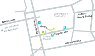 1. Ampel links (TU-Lichtwiese, Vivarium), gerade aus bis Kreuzung Heinrichstraße/ Heidelberger Straße (7. Ampel) rechts bis Kreuzung Heidelberger Straße/Hügelstraße (1. Ampel) rechts abbiegen. Das kleine Dojo liegt nach ca. 100 m. auf der linken Straßenseite.